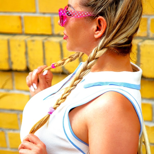 Ich bin im Intimbereich teilrasiert, habe eine Konfektion von 38, einen 85-C Cup und lange blonde Haare.